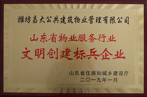 2019年1月被評為“山東省物業(yè)服務行業(yè)文明創(chuàng)建標兵企業(yè)”
