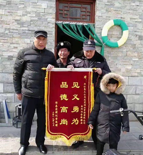 3月13日,青州片區(qū)管理處收到恒泰家園劉君送來一面寫有“見義勇為、品德高尚”的錦旗,感謝南陽河夜班保安不顧個人安危,及時將不慎落水的兒子救起。