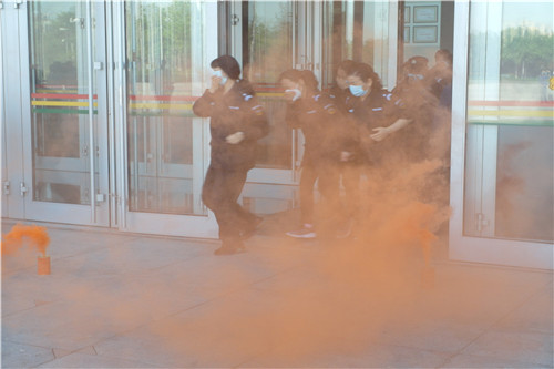 上圖為火場(chǎng)疏散與逃生演習(xí)